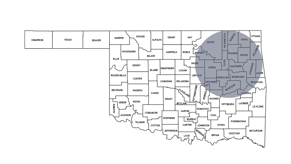 Tulsa • Osage • Pawnee • Creek • Okmulgee • Wagoner • Rogers • Mayes • Muskogee